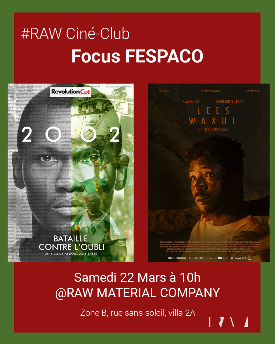RAW Material Company vous invite au RAW Ciné-Club* avec un FOCUS special FESPACO en collaboration avec le journaliste sénégalais spécialisé en « Arts et Culture », Aboubacar Demba Cissokhoà la Zone B, rue sans soleil, Villa 2A le samedi 22 mars à partir de 10h.