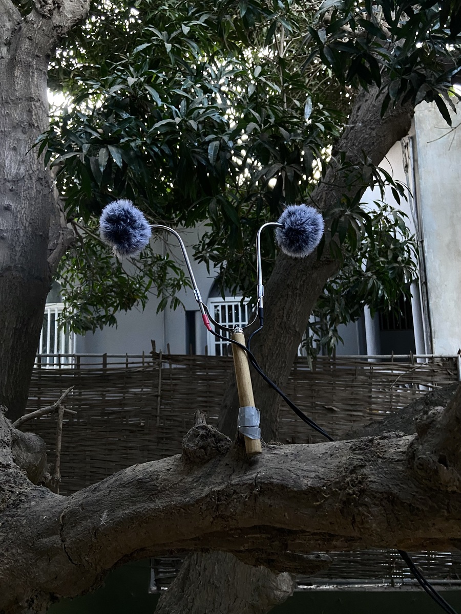 Lors de sa résidence de recherche, l’artiste Maguette Dieng écoute non seulement avec ses oreilles, mais aussi avec la mémoire, le mouvement et l’émotion. Son travail suit les échos de l’expérience vécue : les voix qui s’élèvent des marchés, les chants portés par le vent, le bourdonnement de la vie quotidienne dans l’espace public. Pour Dieng, le son ne se contente pas d’être entendu ; il se ressent, se rappelle, se réinvente.