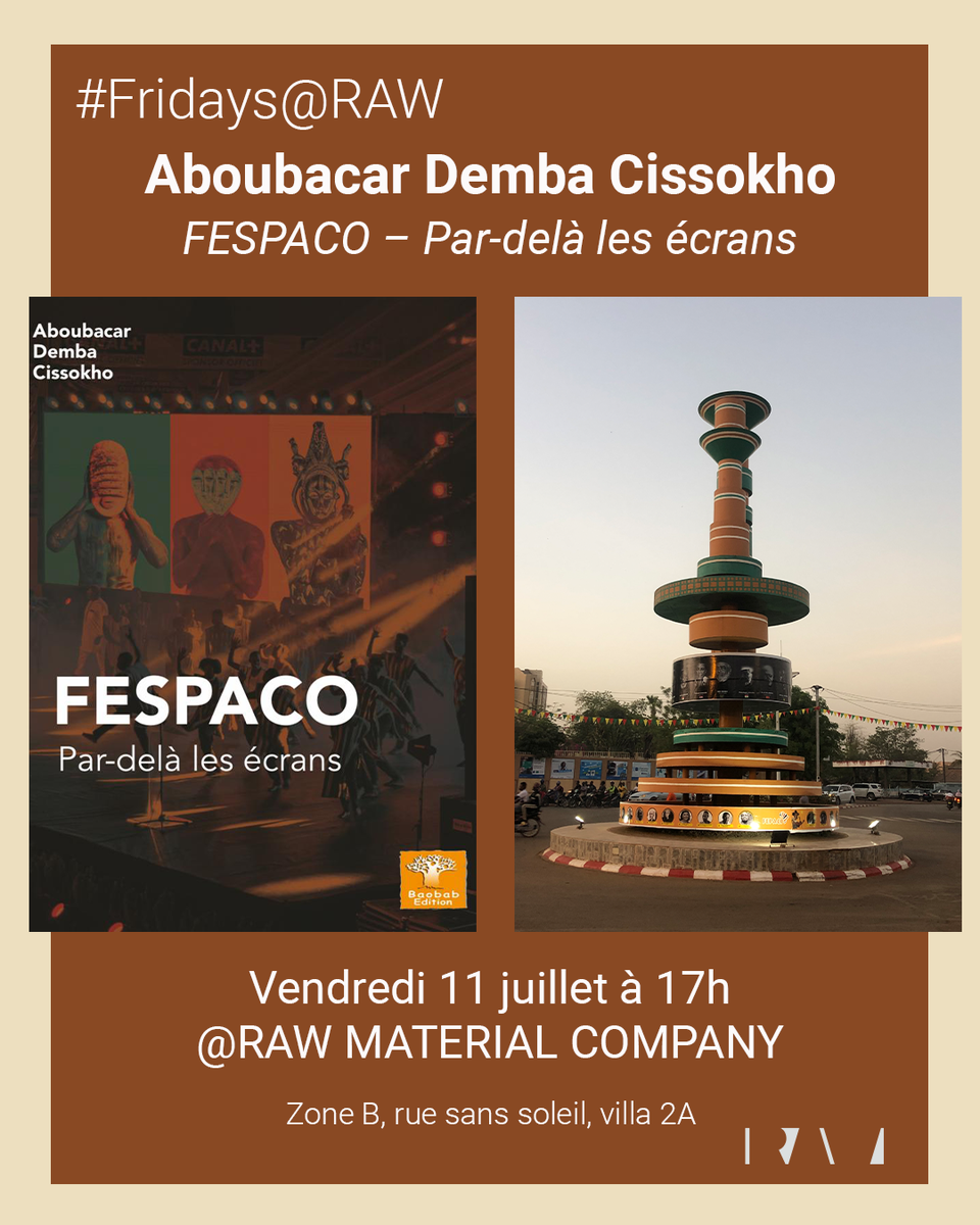 RAW Material Company a le plaisir de vous inviter au Fridays @ RAW avec le journaliste sénégalais Aboubacar Demba Cissokho, qui présentera sa dernière publication FESPACO – Par-delà les écrans, à la Zone B, rue sans soleil, Villa 2A, le vendredi 11 juillet à partir de 17h.