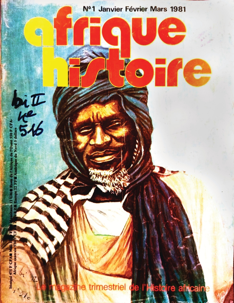 image 2 : Portrait de L’Almamy Samori Touré, en première de couverture du numéro 1 de la revue Afrique Histoire, janvier-février-mars 1981. Voir l’article de Cissoko, Sékéné Mody, « Une victoire fulgurante de l’Almamy Samory : Le coup d’arrêt donné en 1885 à l’occupation coloniale du Soudan », p. 17‑21. © Afrique Histoire.