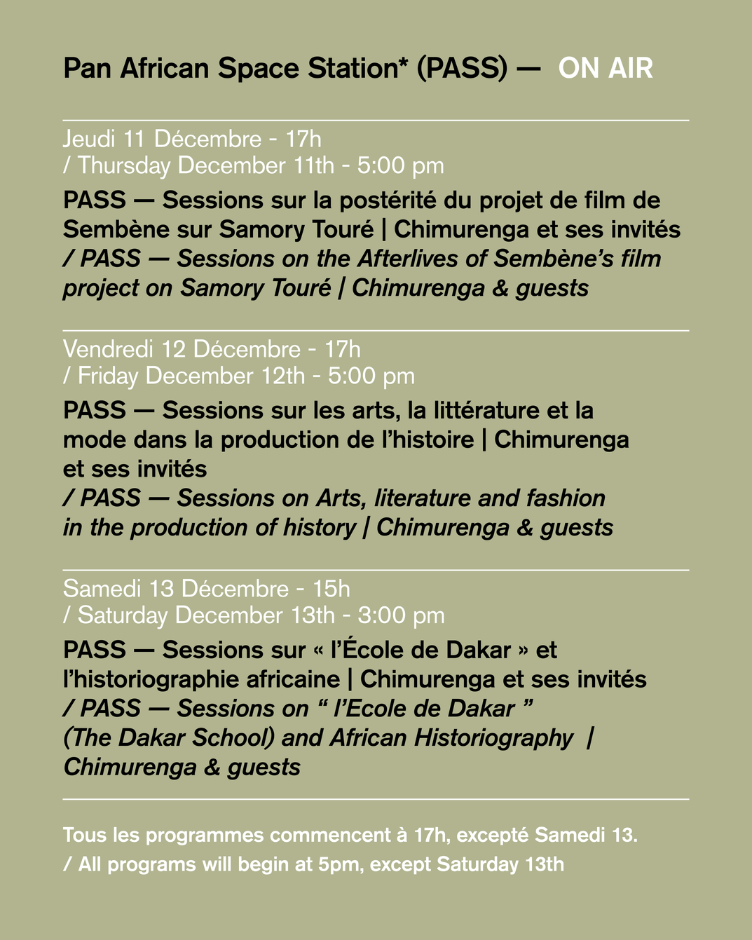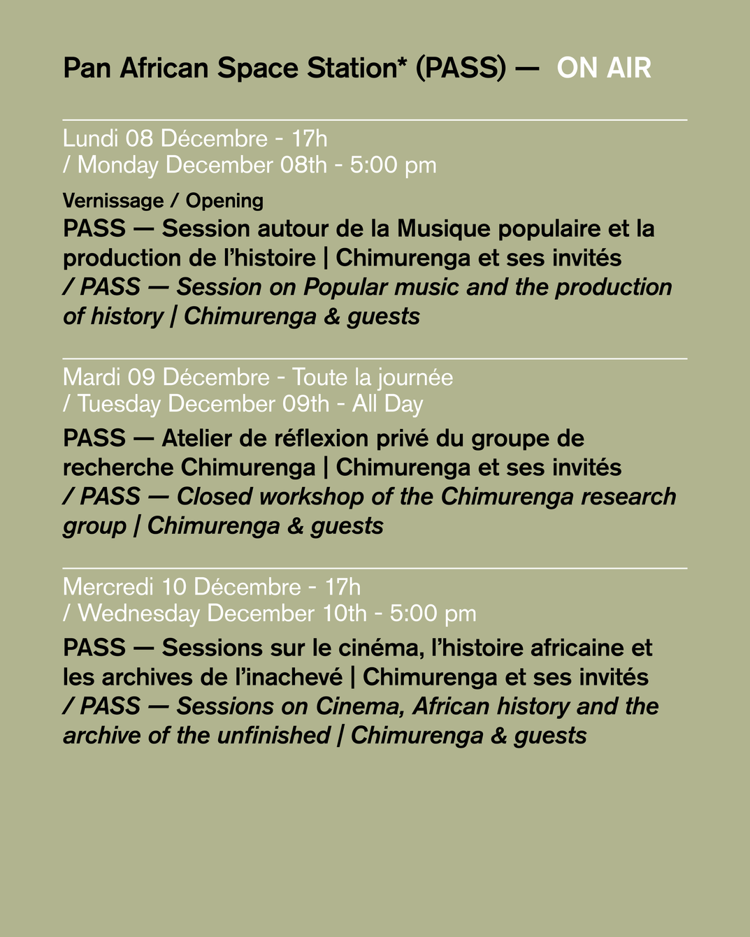 — 17h | Vernissage — Pan African Space Station* (PASS) — ON AIR